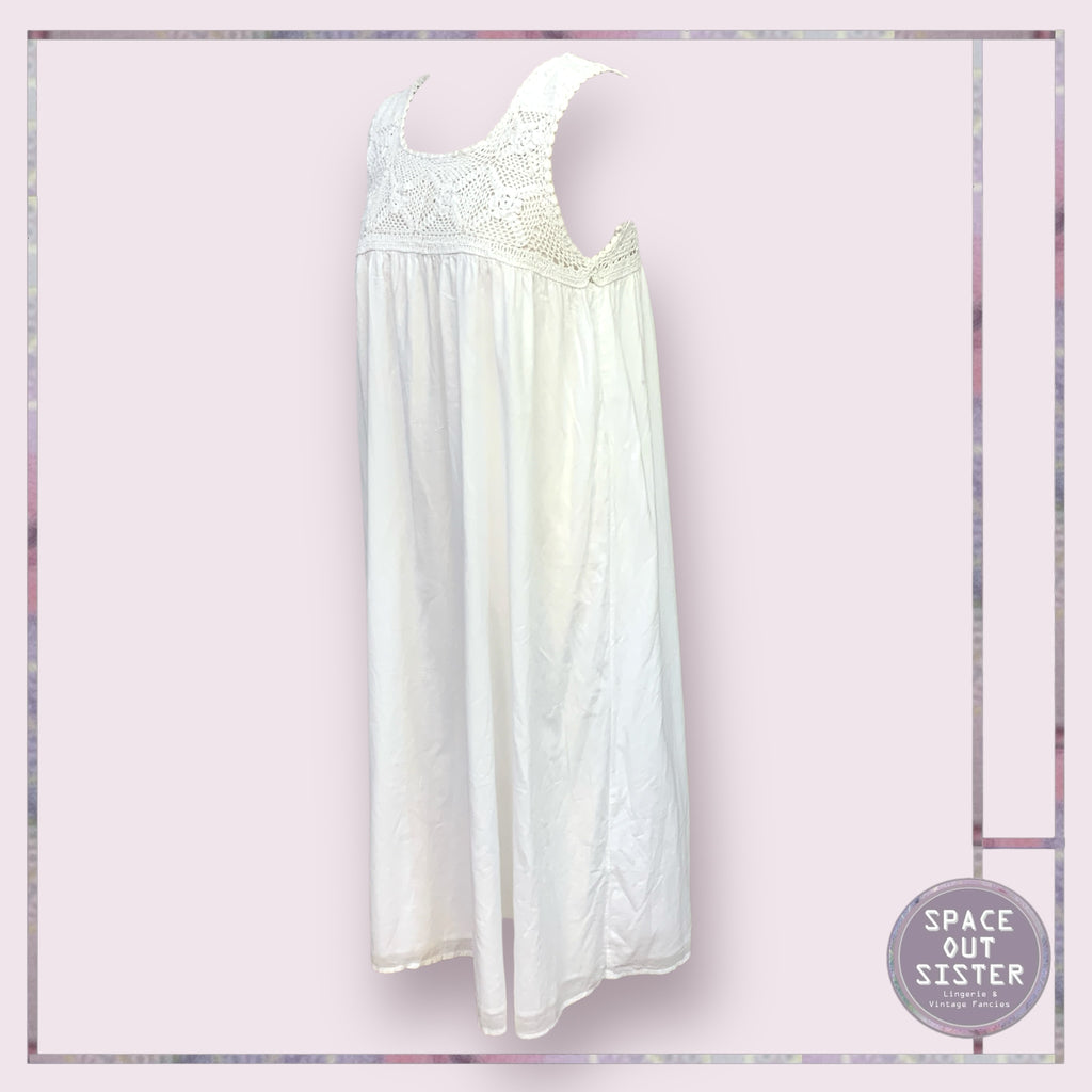 This exquisite Vintage Crochet Cotton Nightdress boasts a classic white design and a delicate crochet neckline, making it a timeless addition to your sleepwear collection. Crafted from soft and breathable cotton, it offers ultimate comfort and a touch of elegance for a restful night's sleep.