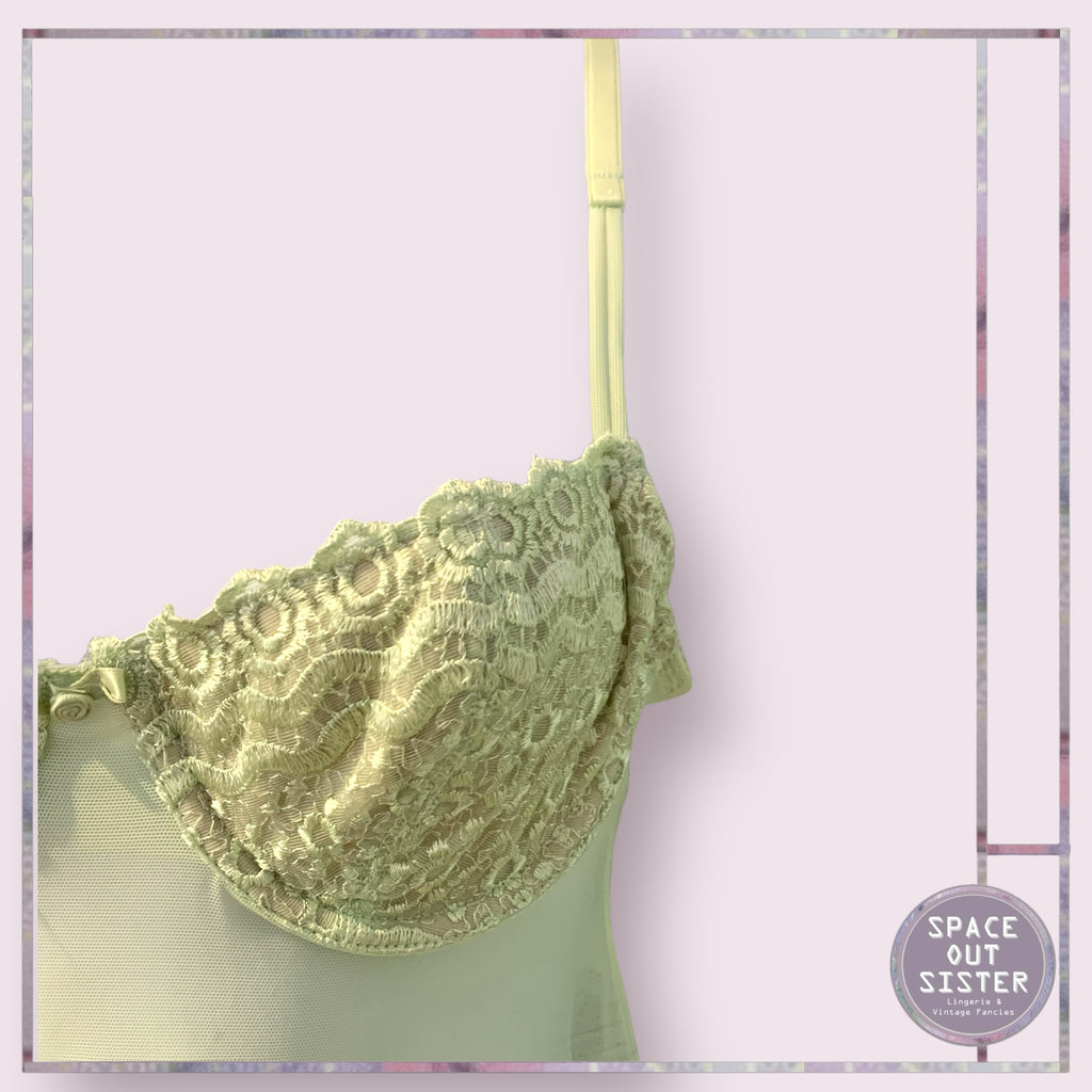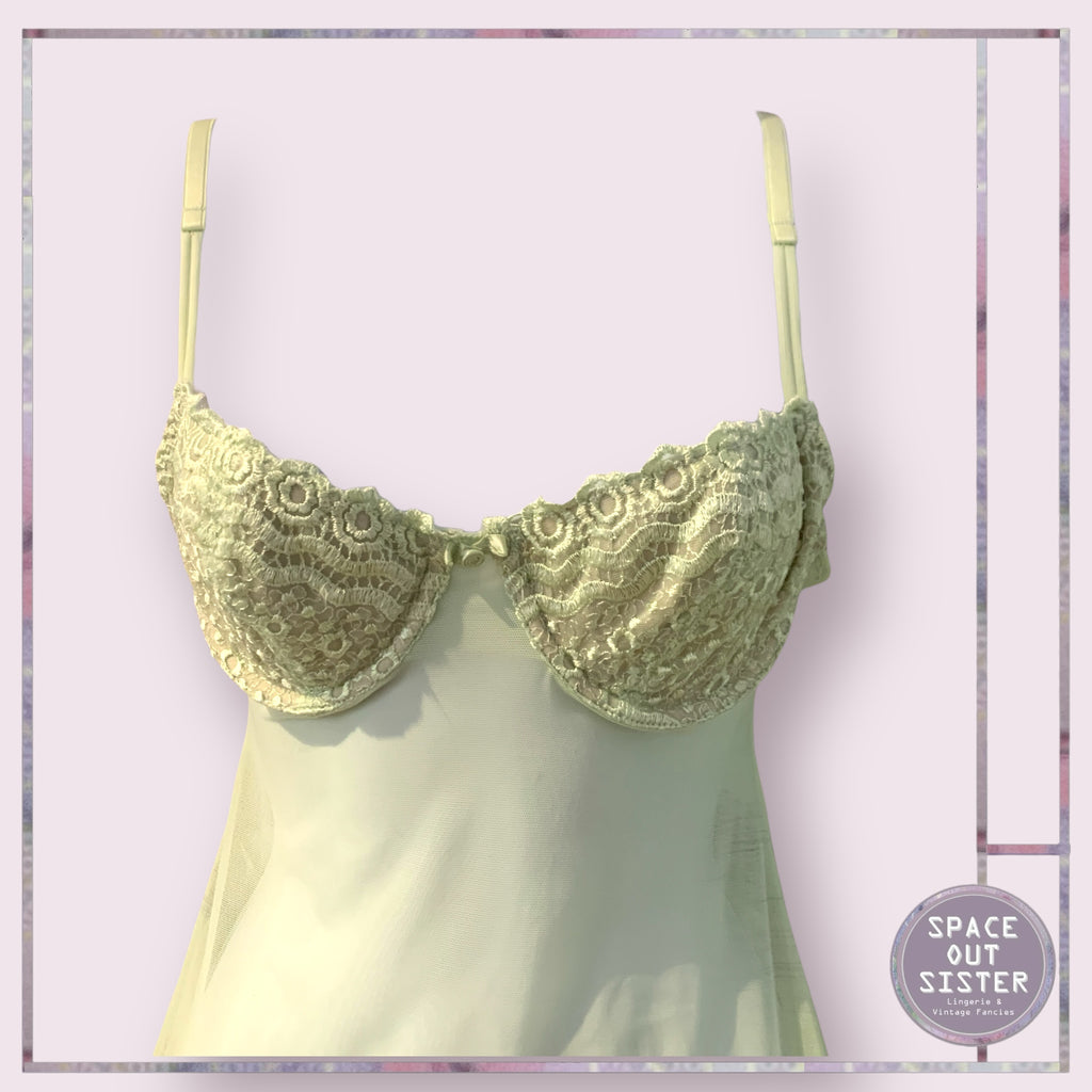 Experience ultimate comfort and elegance in our Vintage Gillian & O’Malley Babydoll Nightdress. Made with soft green fabric, it features adjustable straps and an underwire bust area for a perfect fit. Its sheer design adds a touch of beauty, making it the perfect addition to your nighttime attire.