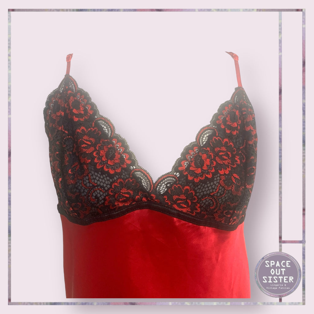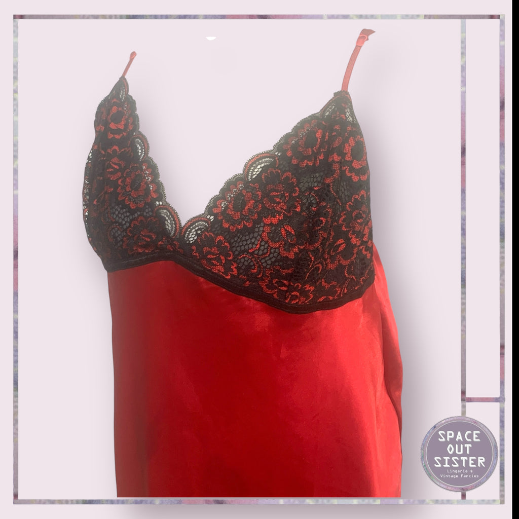 Indulge in luxury with the Donatella Satin Short Slip Dress. Made with beautiful red satin and a black lace overlay on the bust area, this dress exudes elegance and sophistication.