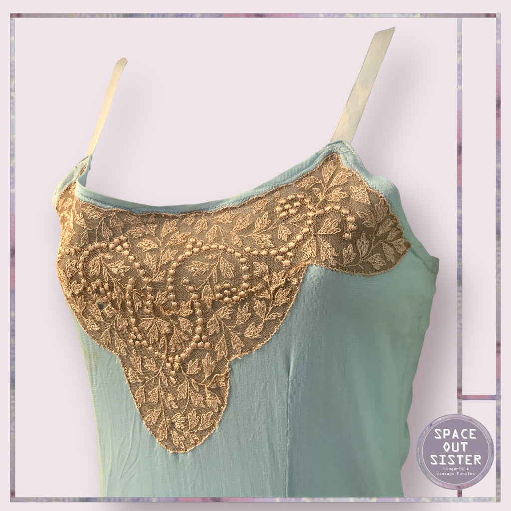 Introducing our Vintage Tricot Taupe Lace Slip! This stunning slip features butterscotch lace at the bust, adding a touch of vintage elegance to your lingerie collection. Made from soft tricot material, it offers both comfort and style. As seen, please see last photos.